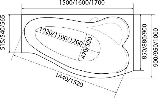 Акриловая ванна Marka One Gracia 150x90 L - арт. 01гр1590л.