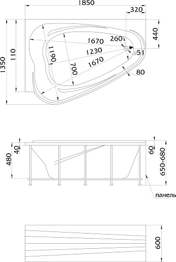 Акриловая ванна Marka One Love 185x135 R - арт. 01лв1813п.
