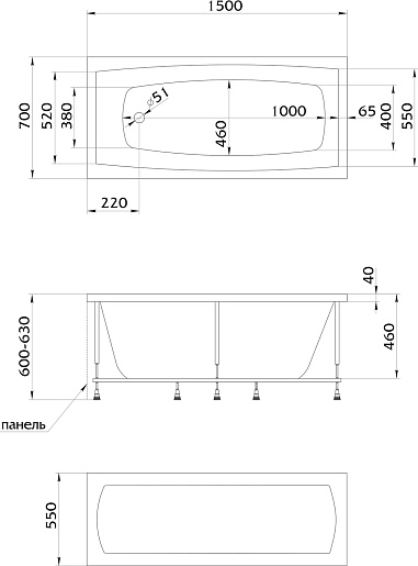 Акриловая ванна Marka One Viola 150x70 - арт. 01ви1570.