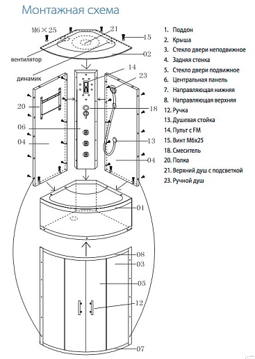 - Верхний душ со встроенным светом
