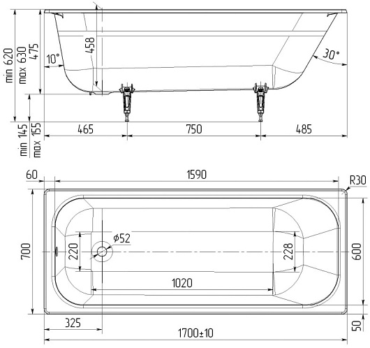 Чугунная ванна Maroni Aura 170х70 - арт. 464857.