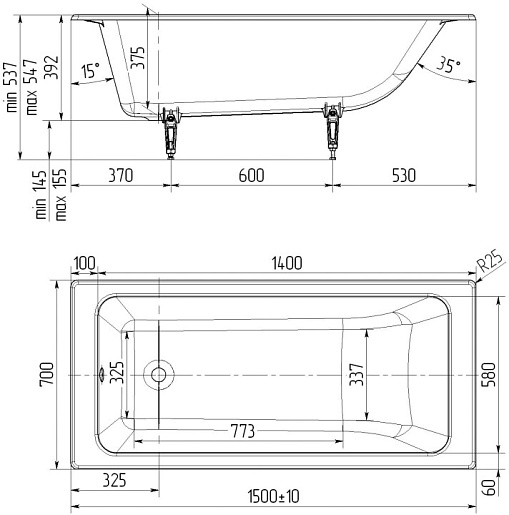 Чугунная ванна Maroni Comfort 150х70 - арт. 464845.