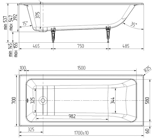 Комплектация: ванна, ножки.