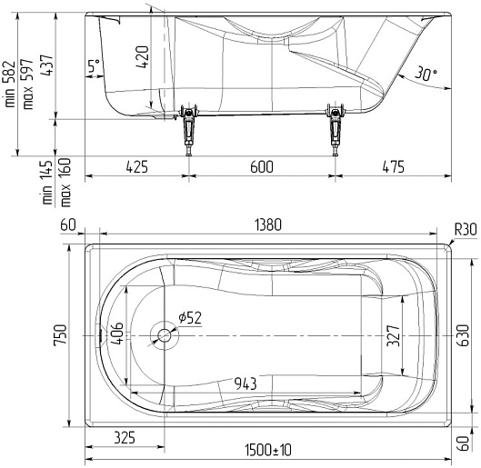 Комплектация: ванна, ножки.