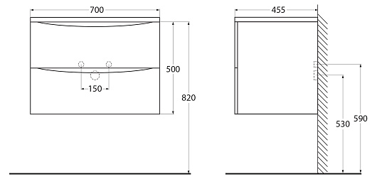 - База под раковину подвесная с двумя выкатными ящиками, с доводчиками, ACQUA-700-2C-SO-PS