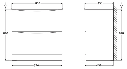 - База под раковину подвесная с двумя выкатными ящиками, с доводчиками, ACQUA-800-2C-SO-BL