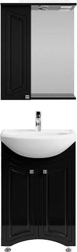 В комплекте: тумба, раковина, зеркальный шкаф, ножки.