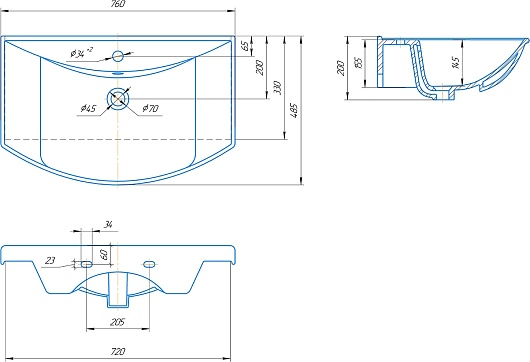 - Размер (ШxВxГ): 750x704x160 мм.