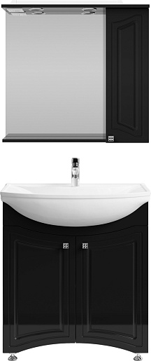 В комплекте: тумба, раковина, зеркальный шкаф, ножки.