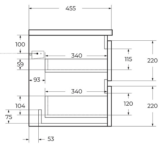 - База под раковину подвесная с двумя выкатными ящиками, с доводчиками, ALBANO-1200-2C-SO-PS