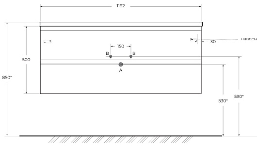 - База под раковину подвесная с двумя выкатными ящиками, с доводчиками, ALBANO-1200-2C-SO-RR