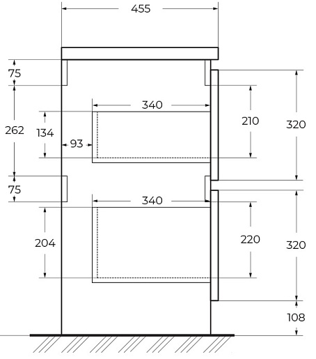 - База под раковину подвесная с двумя выкатными ящиками, с доводчиками, ALBANO-600-2C-PIA-BL