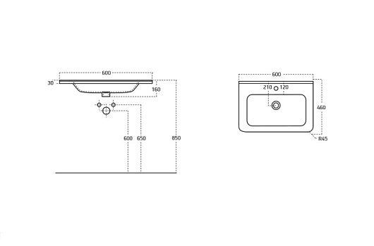 - База под раковину подвесная с двумя выкатными ящиками, с доводчиками, ALBANO-CER-600-2C-SO-CVG