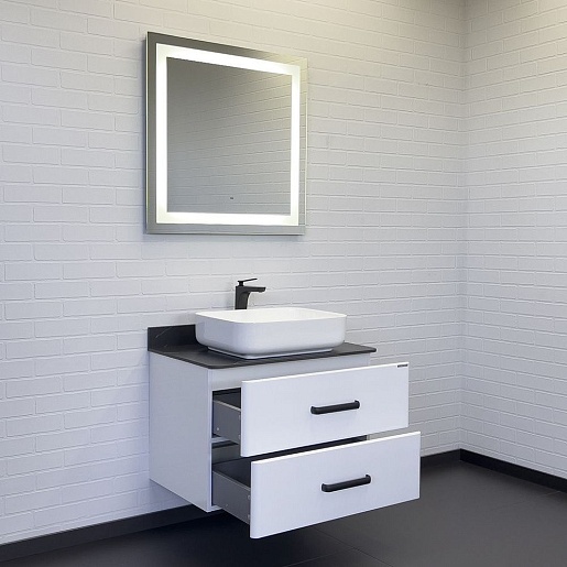 Comforty Мебель для ванной Амстердам 75 с зеркалом Квадрат подвесная белая