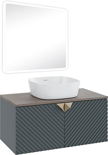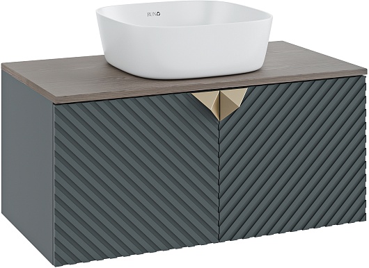 Тумба под раковину Андорра 85 подвесная зеленый графит/дуб коньячный