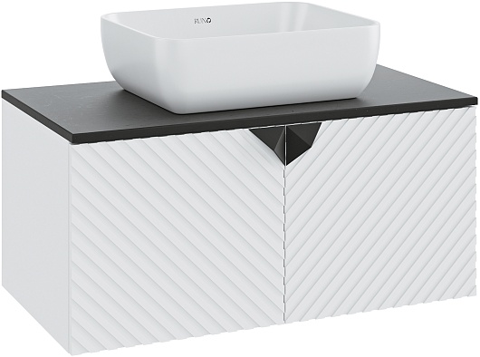 Тумба под раковину Андорра 85 подвесная белая матовая/черная