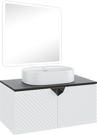 Тумба под раковину Андорра 85 подвесная белая матовая/черная