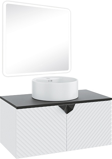 Тумба под раковину Андорра 85 подвесная белая матовая/черная