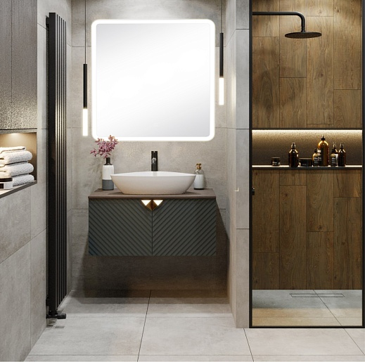 Runo Мебель для ванной Андорра 85 Terzo подвесная зеленый графит/дуб коньячный