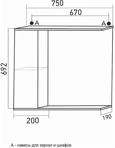 - 1 распашная дверца, 1 открытая полка.
