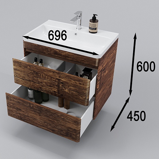 Тумба под раковину Атлантика 70 Люкс Plus подвесная старое дерево