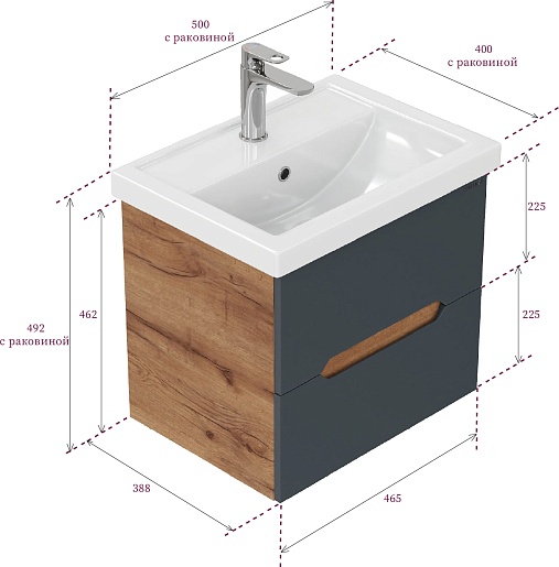 Тумба под раковину Айленд 50 подвесная графит/дуб крафт