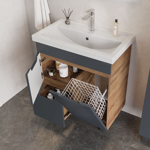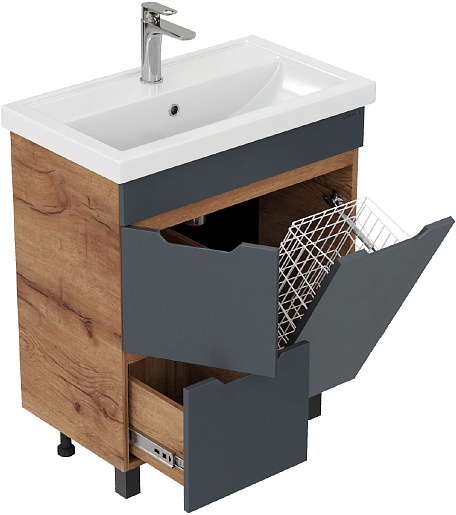 Тумба под раковину Айленд 70 графит/дуб крафт