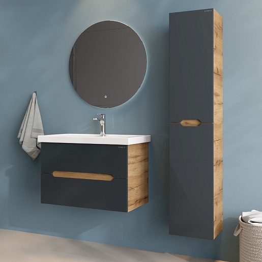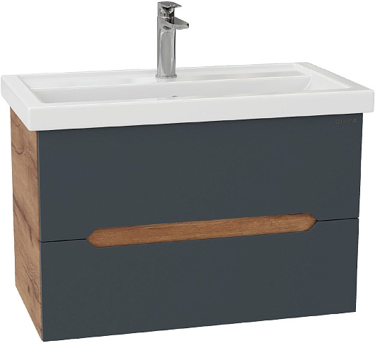 Тумба под раковину Айленд 70 подвесная графит/дуб крафт