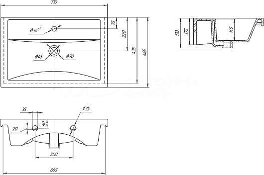 - Раковина со слив-переливом.