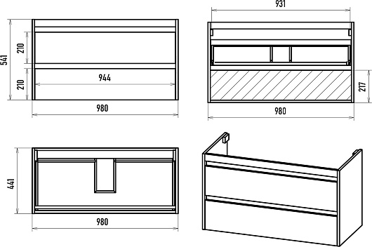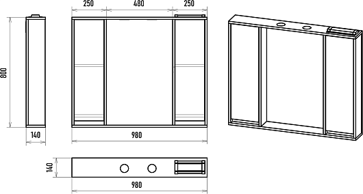 - Размер (ШxВxГ): 980x800x140 мм.