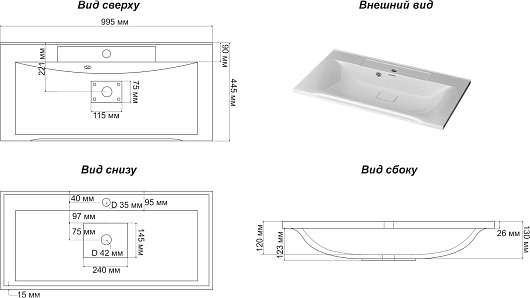 Комплектация: тумба, раковина, зеркальный шкаф, крепеж.
