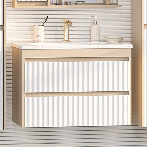 Тумба под раковину Balaton 80 подвесная белая/бежевая