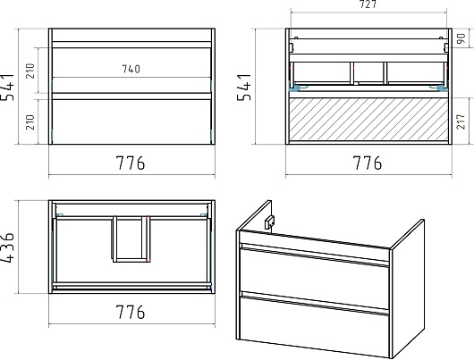 - Противоскользящие коврики по всей нижней поверхности выдвижных ящиков.