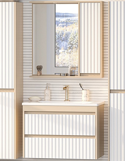 Зеркальный шкаф Balaton 80 R белый/бежевый