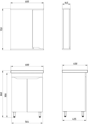 - Габариты (ШxВxГ): 600x750x145 мм.