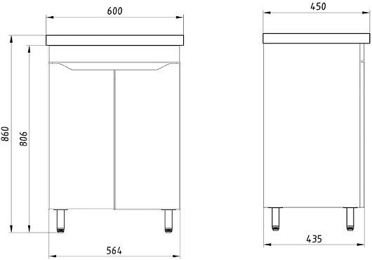 - 1 распашная дверка, 1 открытая полка.