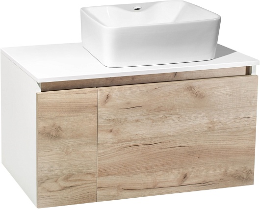 Тумба под раковину Бари 80 подвесная дуб крафт/белая