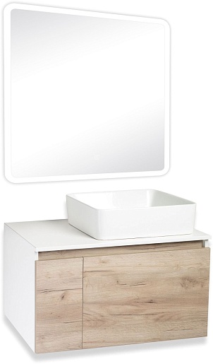 Тумба под раковину Бари 80 подвесная дуб крафт/белая