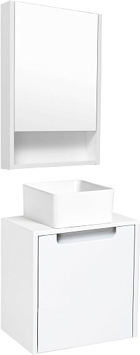 В комплекте: тумба, раковина, зеркальный шкаф, крепеж.