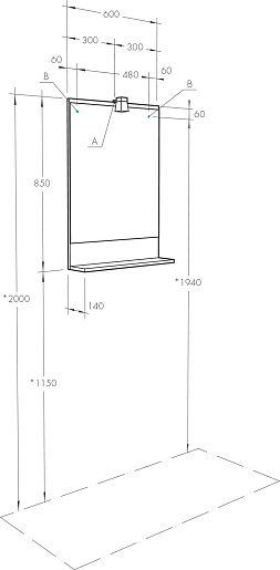 - Размеры (ШxВxГ): 600x850x140 мм.