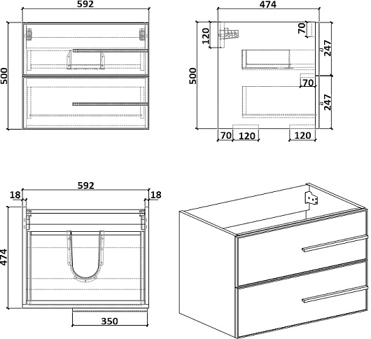 - 2 выдвижных ящика.