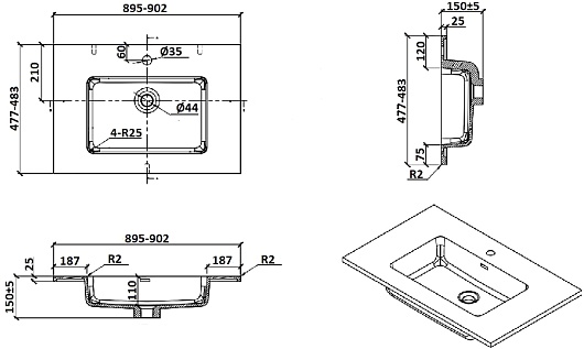- Монтаж: подвесной.