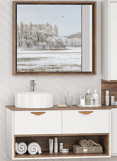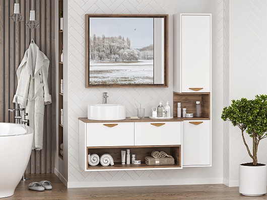Тумба под раковину Bergen 105 подвесная дуб галифакс олово/белая