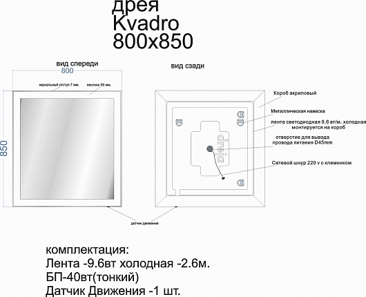 Зеркало Kvadro 80 с LED подсветкой