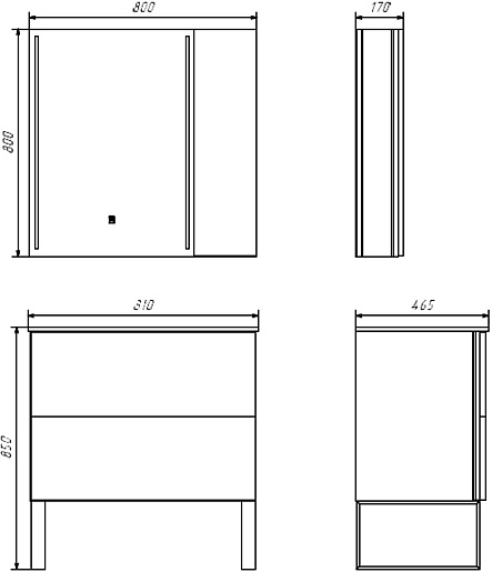- Размер (ШxВxГ): 800x800x170 мм.