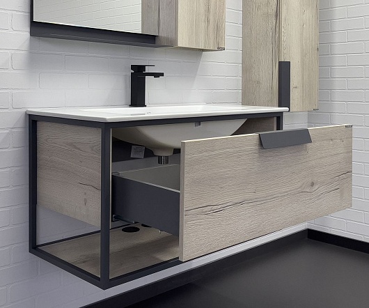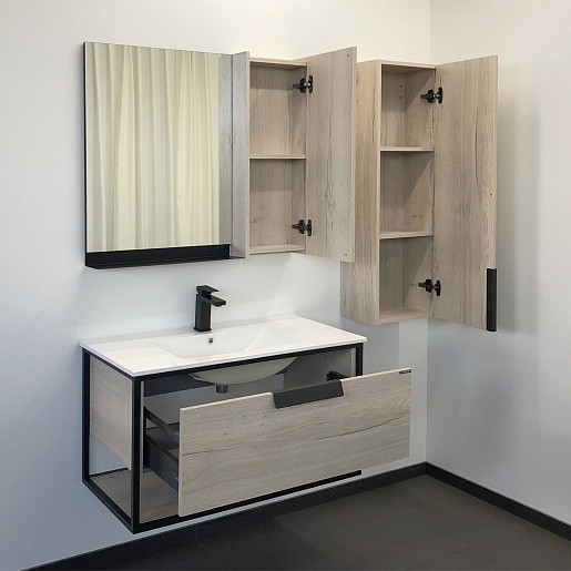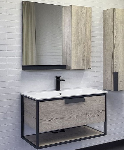 Тумба с раковиной Бонн 90 подвесная дуб дымчатый/графит