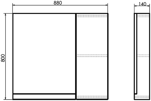 - Размер (ШxВxГ): 880x800x140 мм.