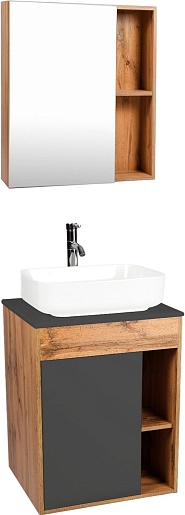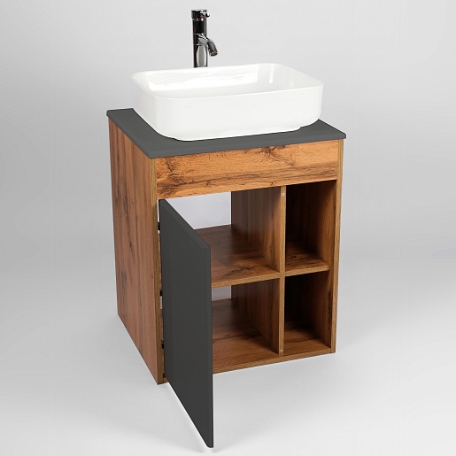 Тумба под раковину Бостон 56 подвесная графит/дуб вотан