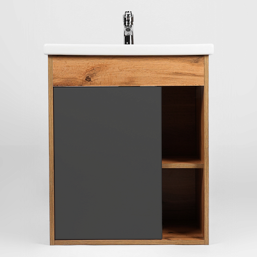 Тумба под раковину Бостон 60 подвесная графит/дуб вотан