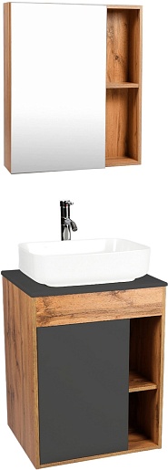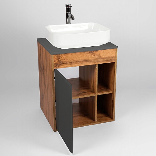 Тумба под раковину Бостон 65 подвесная графит/дуб вотан